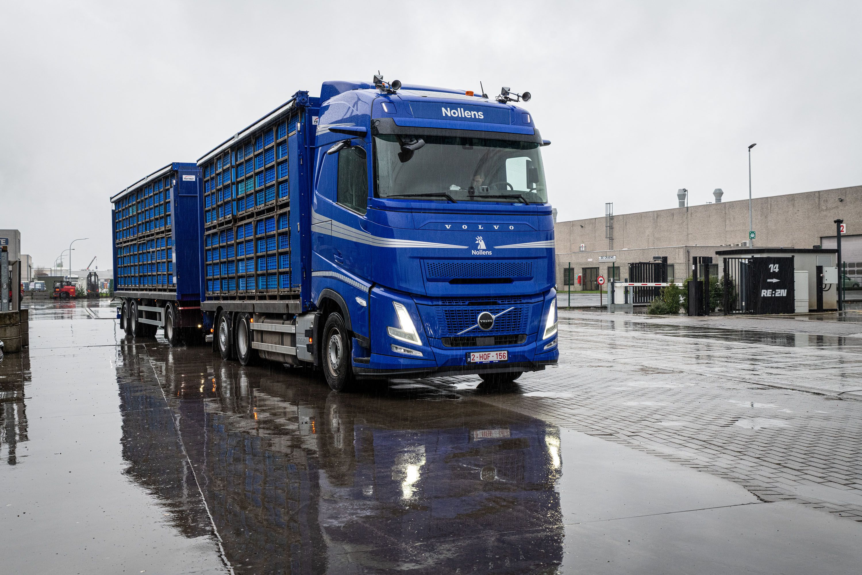 Pluimveeslachterij Nollens uit Kruisem verwerkt dagelijks grote volumes vers pluimvee. Een vlotte én hygiënisch veilige aanvoer is daarbij onmisbaar. Daarom investeert het bedrijf al jaren in een eigen, moderne vrachtwagenvloot. Recent kwamen daar twee nieuwe Volvo FH Aero-trucks bij: een Volvo FH Aero 500 6x2-trekker en een Volvo FH Aero 500 6x2-vrachtwagen met open laadkast en zeilen. “Wij willen trucks die zuinig, betrouwbaar en comfortabel zijn”, zegt zaakvoerder Bruno Nollens. “De Volvo FH Aero scoort op elk punt.”